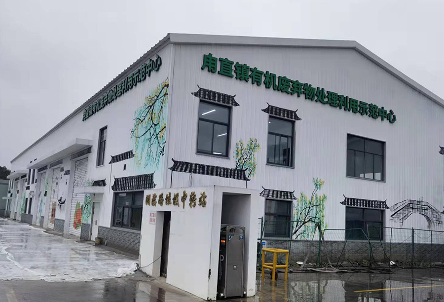甪直基地位于江苏省苏州市吴中区甪直镇,占地面积1000平方米,2021年底已建成并投入运营。日处理有机废弃物40吨,针对不同的有机废弃物(餐厨垃圾、园林废弃物、太湖水草、芦苇、蓝藻、河道淤泥、水稻秸秆)进行原料配比,添加高效复合微生物菌剂,采用连续生物干化+好氧发酵工艺,7天完成制肥,年产固体有机肥5000吨,可实现6000亩土地绿色生产。该项目实现镇域有机废弃物的“零”废弃,不出镇、不入河,减少了环境污染;又实现了化肥农药减量,支持农业绿色发展。